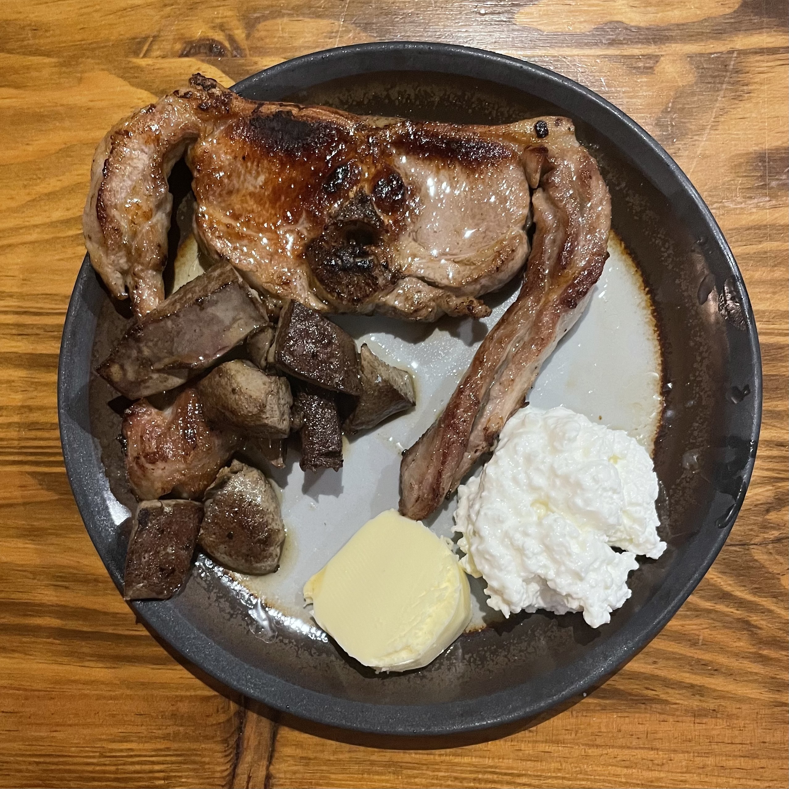 저녁은 양고기와 양 간, 코티지치즈. 버터.